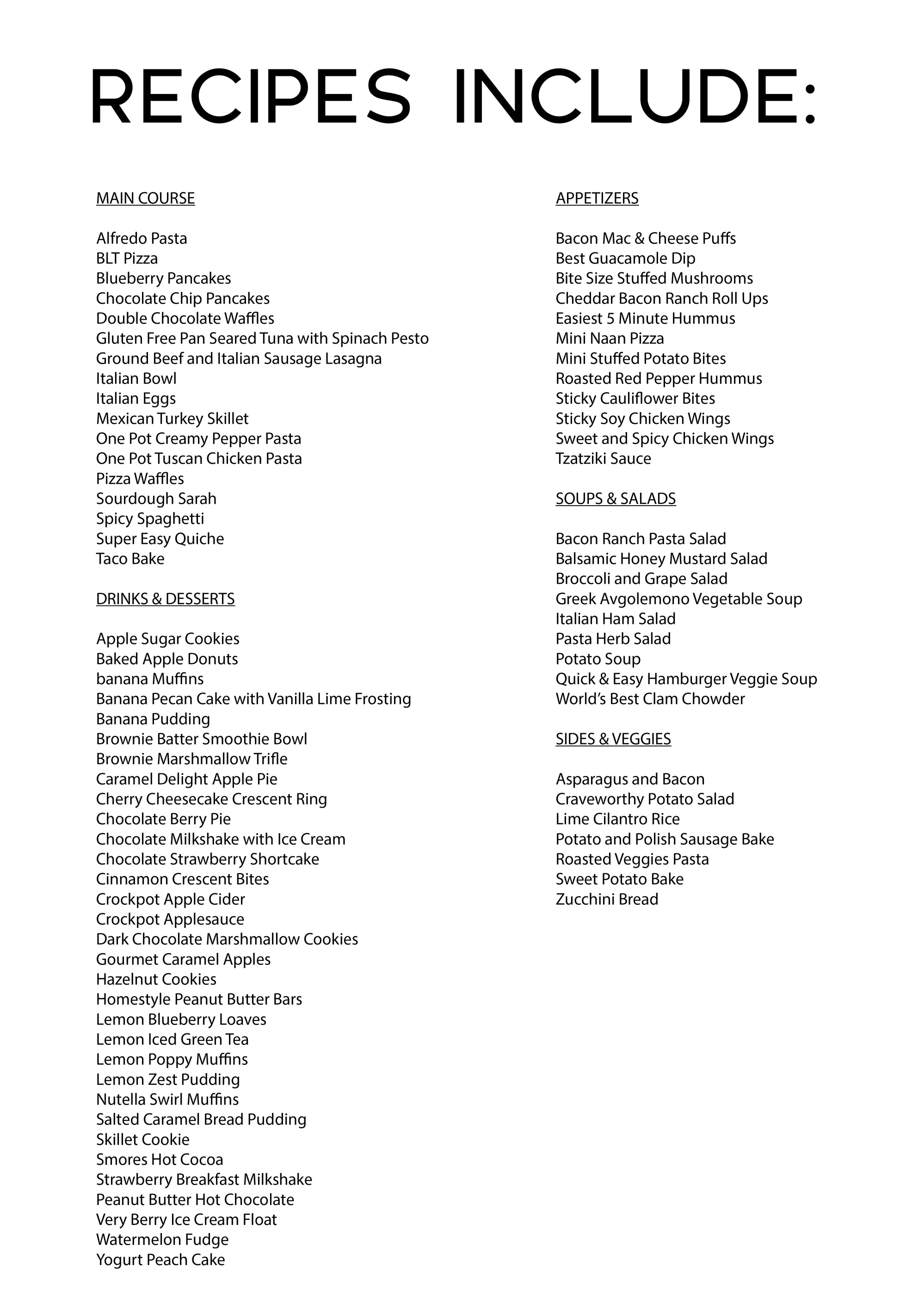 - Sides & veggies recipes (listed below)