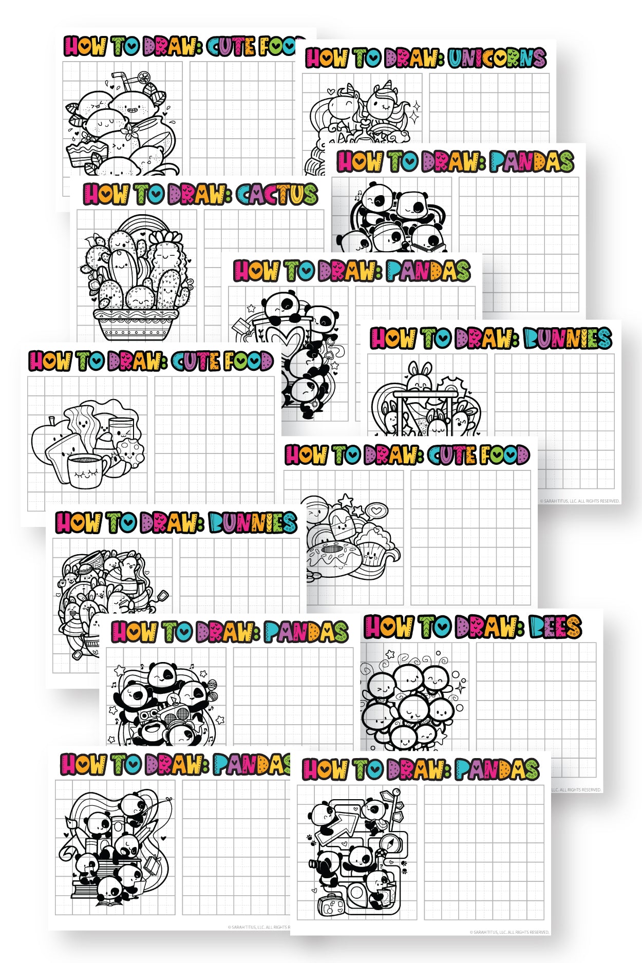 This How to Draw printable pack is bursting with step-by-step grid tutorials that make drawing easy, confidence-boosting, and full of creativity, even for complete beginners!