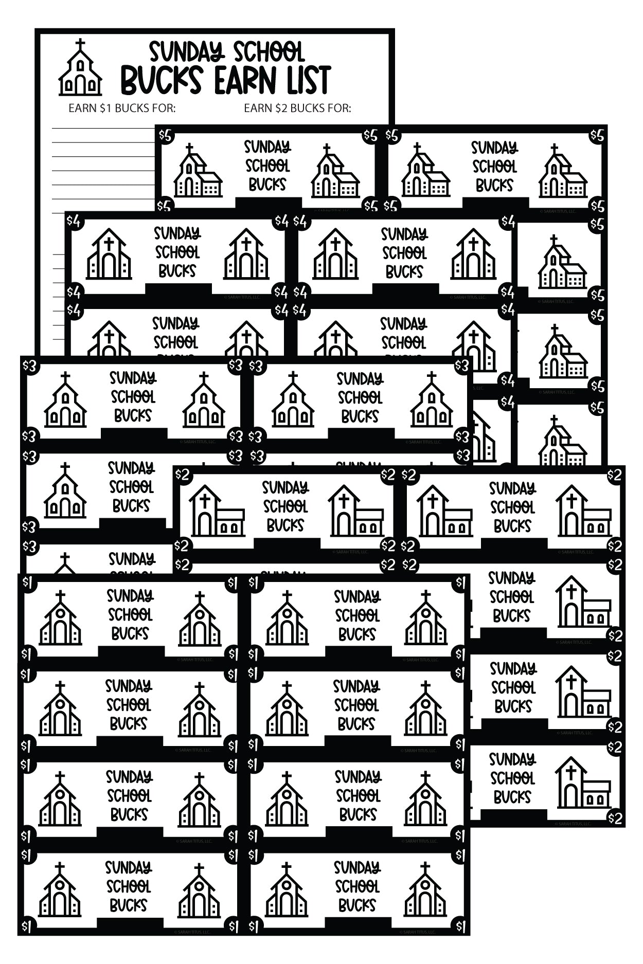- $5 Sunday School Bucks